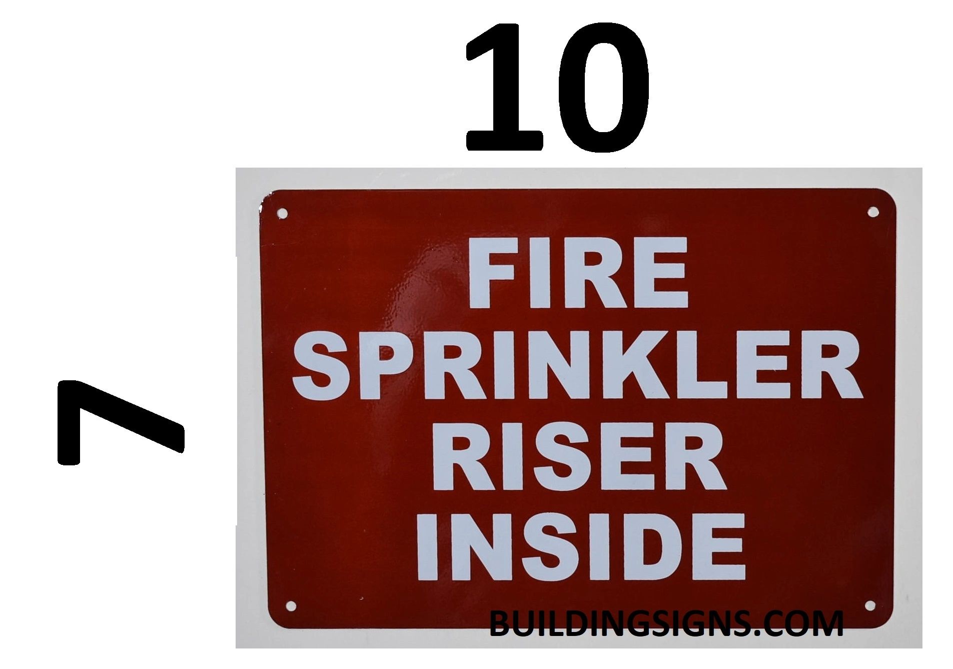 Red fire sprinkler riser room sign on aluminum plastic magnetic or label substrate.